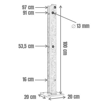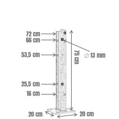 Sigma-100-Pfosten für Leitplanken mit B-Profil, 75 cm Höhe, Doppelbeplankung - zum Artikel